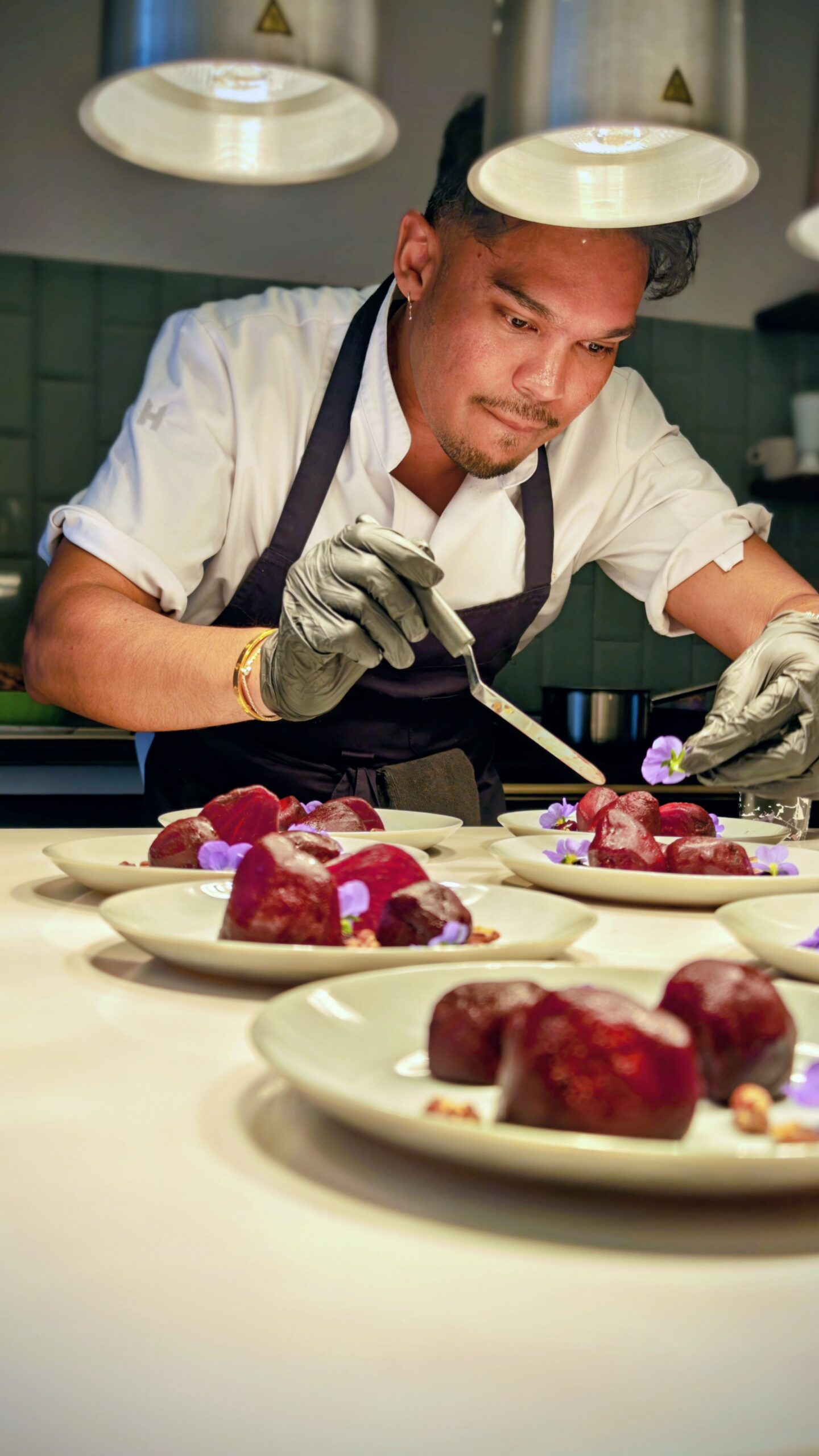 Chef Darren preparing vegtrian dishes for a dinning catering