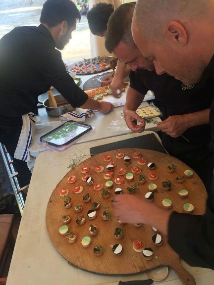 Harry’s kitchen crew prepping a board with sweet and hearthy canapes